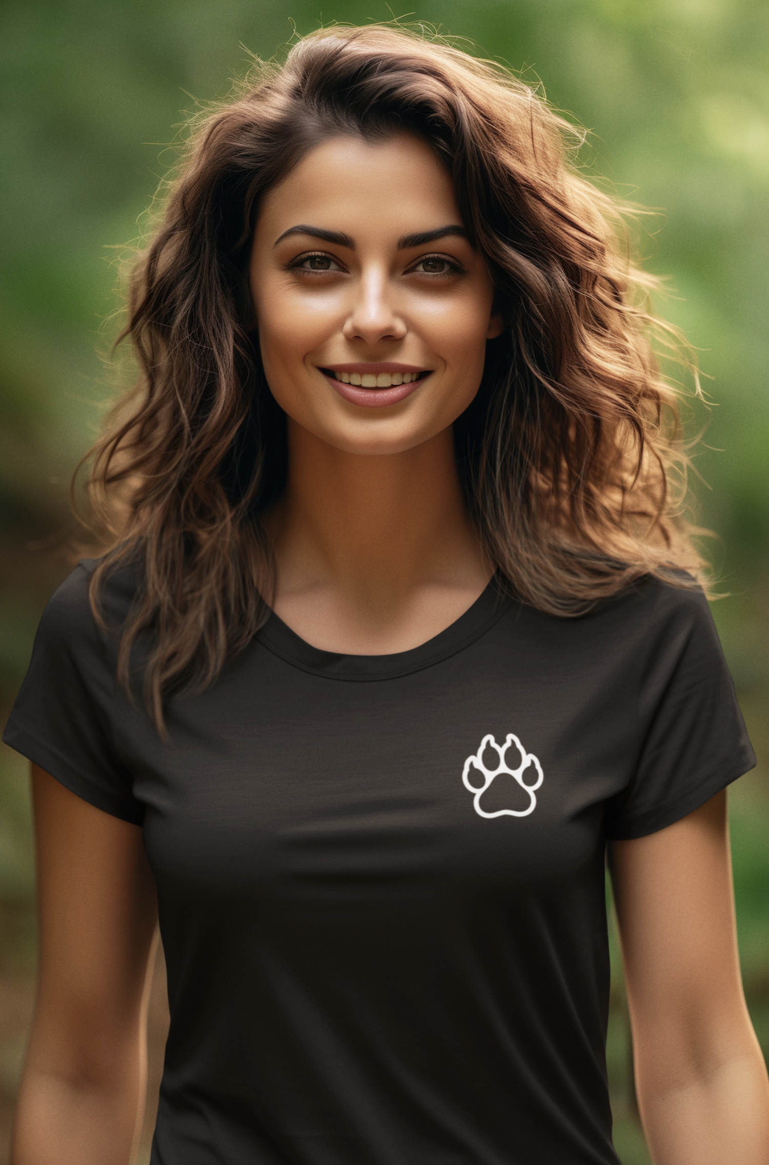 Enhance your wardrobe with the InkedWolf Women's T-Shirt, featuring a sleek wolf paw print on the pocket. This comfy, stylish tee is perfect for any casual occasion. Show your InkedWolf pride with this must-have piece!